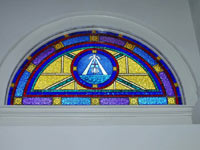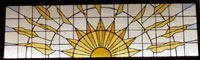 The back window ending in the sunburst is at once symbolic, abstract, traditional, and contemporary.