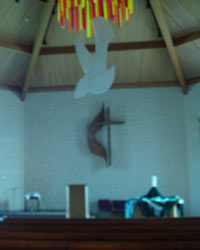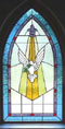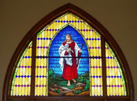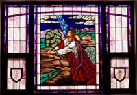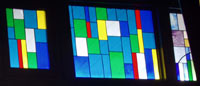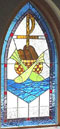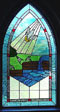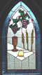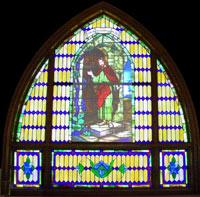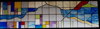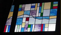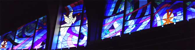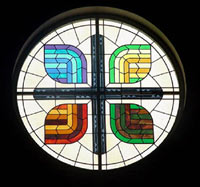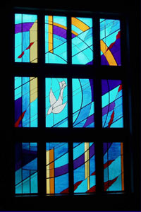 While the altar area begins with a relatively formal and somewhat traditional approach, the middle of the window is highly abstract and open to various interptretations.