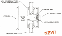 Cut-away view of a vented framing bar. Product of J. Sussman Inc. Jamaica, NY marking 100 years of custom church window frames. |