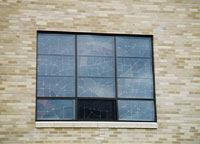 The enlarged view of the perimeter showing a direct, well tooled silicone seal of the glass and brick. Stable, low conduction of heat and frost, economical, easy to service panel, environmentally friendly. |